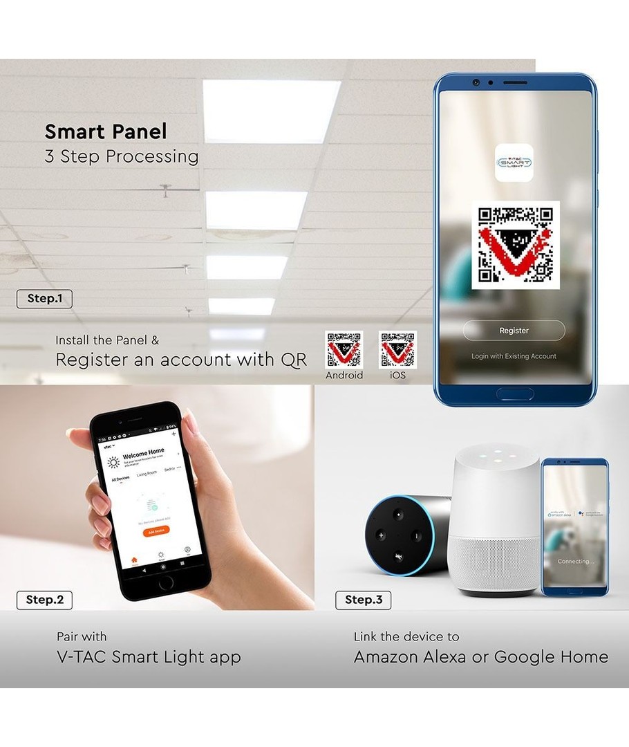 Funktioner:Dette LED panel integreres problemfrit i dit smart home setup, da det er kompatibelt med både Google Home og Alexa. Installer panelet i et rum og få adgang til et utal af belysningsmuligheder direkte fra din smartphone ved hjælp af Tuya eller Smart Life apps. Dette sikrer, at du altid har fuld kontrol over lysstyrken og stemningen i dit hjem.